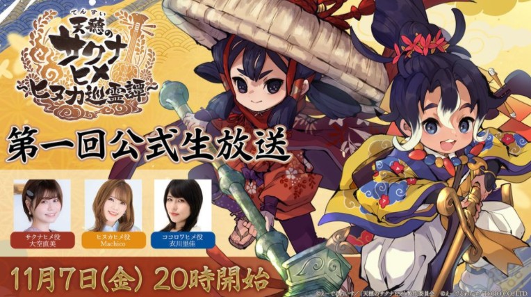 官方表示,《天穗之咲稻姬~日糠巡灵谭~》第一回官方生放送决定于 11 月 7 日(五)19:00 登场。