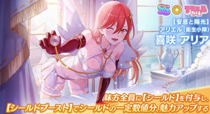 自 10 月 31 日推出的理理庆典转蛋角色【安息与阳光】亚莉艾露(卫生小队)喜咲亚理亚,是名莉莉艾露外传主题 SS 闪耀(黄)属性角色,于理理庆典转蛋中 SSR 角色出现率提升为 4 %。
