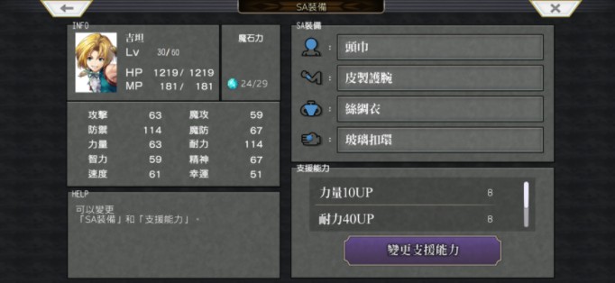 让吉坦、嘉妮特、比比、斯坦纳装备上支援能力吧!使用魔石力来装备支援能力,就可以让角色发挥各式各样的效果。