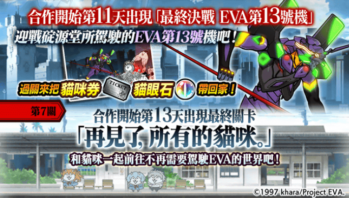 《新世纪福音战士》的角色们会登场的合作限定关卡来了!过去的合作关卡都会再次登场,且出自「新世纪福音战士剧场版」的强袭关卡「EVA 量产机强袭」新登场!务必来体验在《猫咪大战争》所重现的《新世纪福音战士》故事!
