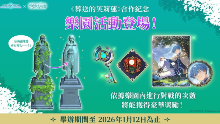 官方表示,12 月 29 日(一)的维护结束后,《Shadowverse: Worlds Beyond》决定与动画《葬送的芙莉莲》展开合作。以「芙莉莲」为首的人气角色们将在《Shadowverse: Worlds Beyond》游戏内登场。