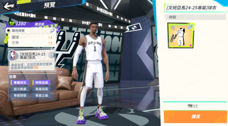 球衣以马刺经典黑白配色为基调,重现文班亚马在场上冷静而强悍的防守气场,让玩家能以球星同款战袍上阵对决。本期赛季通行证同样带来亮眼内容,推出全新【酷爪】时装。所有街球手只需完成指定任务,即可免费领取酷爪上衣;购买高级版通行证,更能立即解锁完整套装,轻鬆展现青春活力的街头风格。