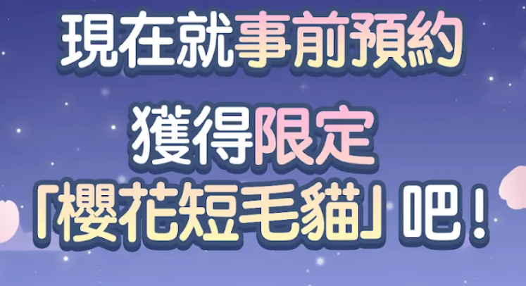 完成事前预约 可获人气猫咪「樱花短毛猫」与多项道具